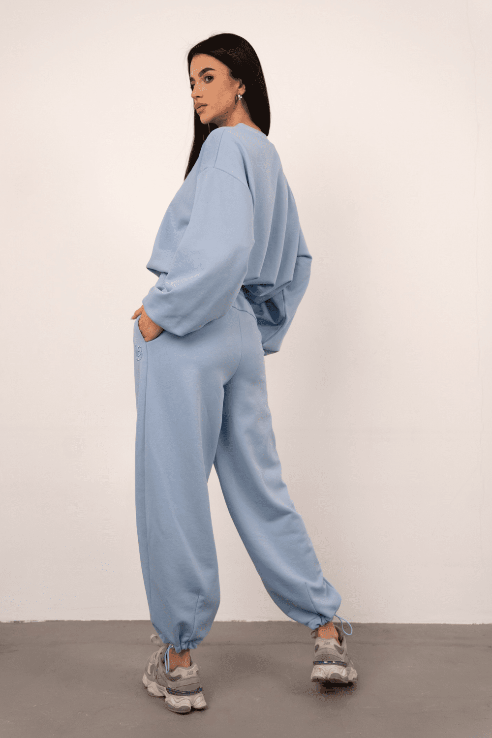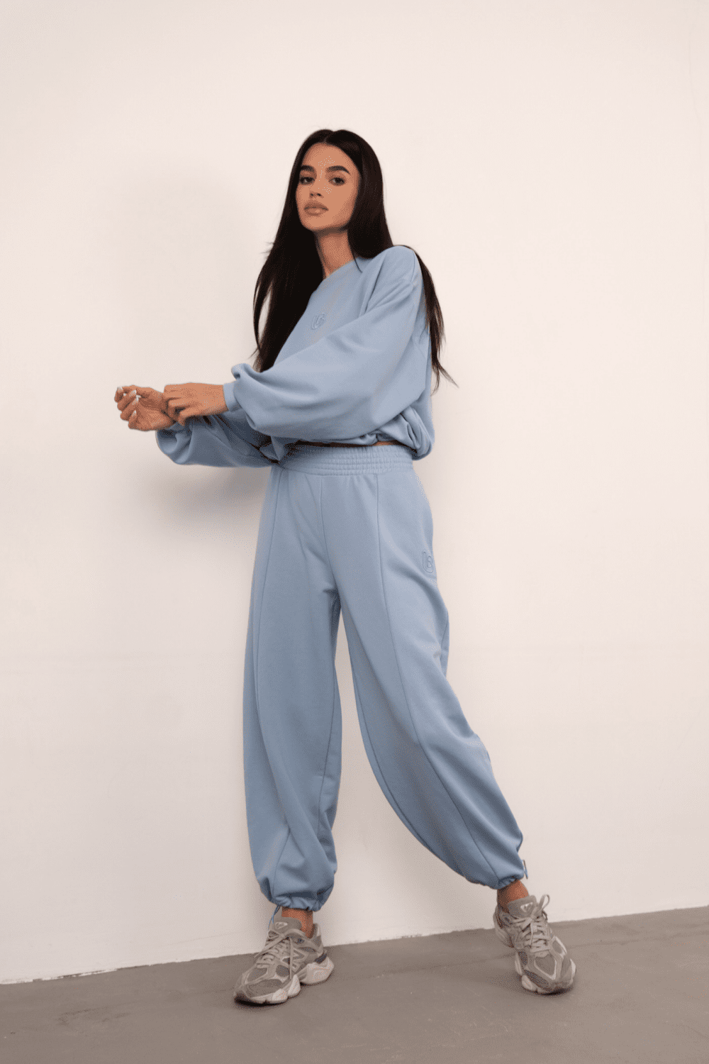 Το γυναικείο σετ Bronx στην απόλυτη γαλάζια απόχρωση αποτελεί μια ολοκληρωμένη στυλιστική πρόταση με editorial αισθητική, ιδανική για τη γυναίκα που επιδιώκει την άνεση χωρίς να θυσιάζει το high-fashion ύφος της. Το σετ αποτελείται από ένα oversized φούτερ με χαλαρή εφαρμογή και ένα αντίστοιχο παντελόνι jogger που κλείνει με λάστιχο στους αστραγάλους, δημιουργώντας μια σύγχρονη σιλουέτα που αποπνέει αυτοπεποίθηση. Η premium ποιότητα του υφάσματος εξασφαλίζει απαλή αίσθηση, κάνοντας το Bronx το απαραίτητο statement item για την γκαρνταρόμπα σας.