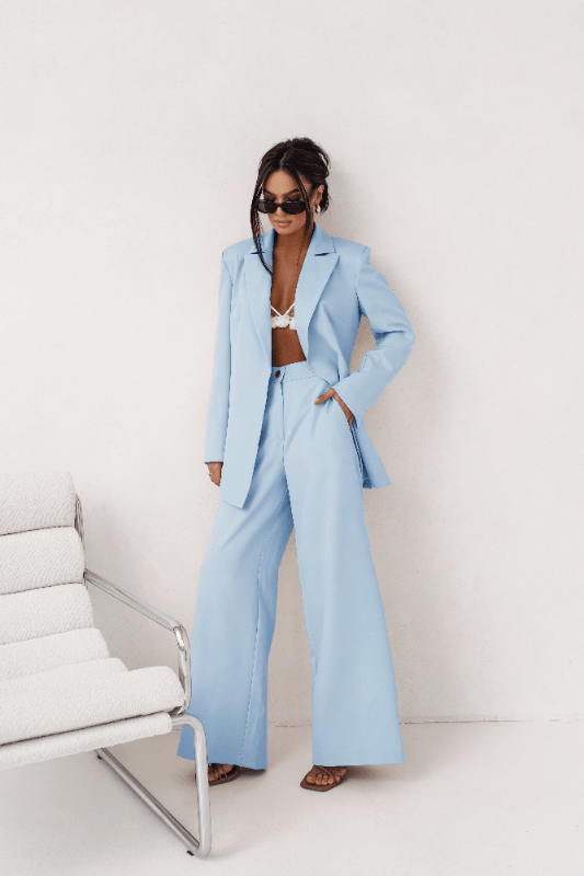 Το Γυναικείο Κοστούμι EMMA στην αιθέρια Γαλάζια απόχρωση αποτελεί την επιτομή της φρεσκάδας και της εκλεπτυσμένης κομψότητας. Αυτό το premium set περιλαμβάνει ένα δομημένο σακάκι blazer με σύγχρονη κοπή και το αντίστοιχο παντελόνι σε ίσια γραμμή που επιμηκύνει τη σιλουέτα. Το γαλάζιο χρώμα προσφέρει μια αίσθηση ηρεμίας και πολυτέλειας, καθιστώντας το την ιδανική επιλογή για τη γυναίκα που επιθυμεί ένα elegant look που ξεχωρίζει με τη διακριτικότητά του.