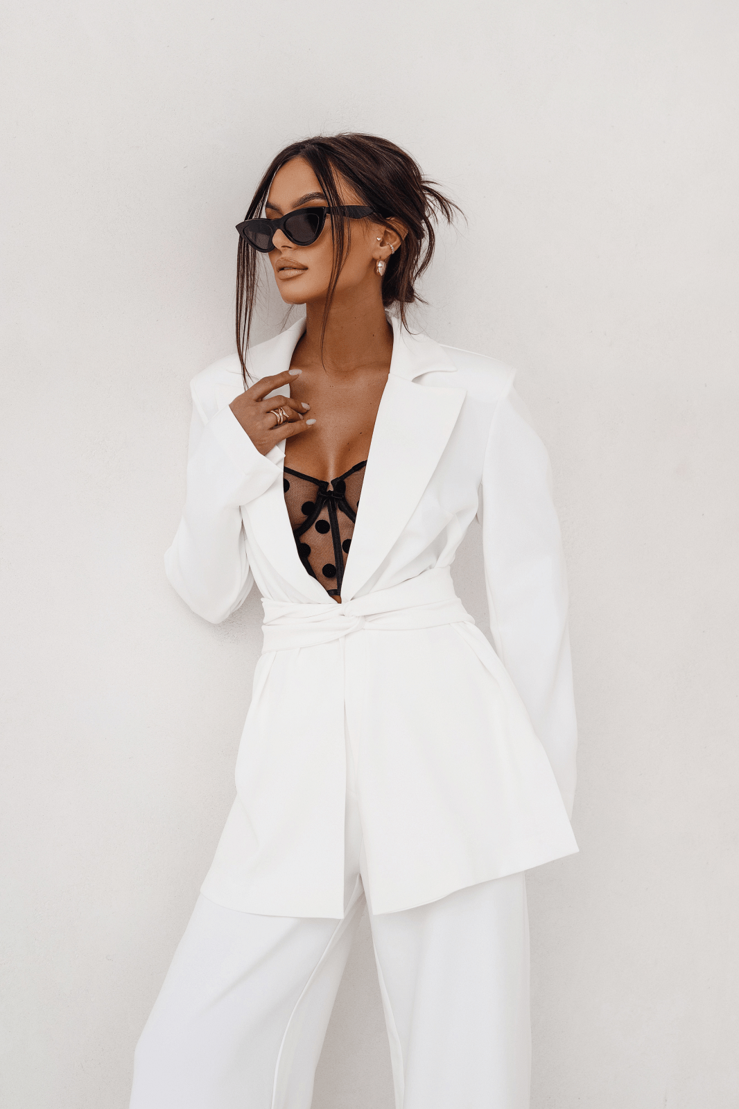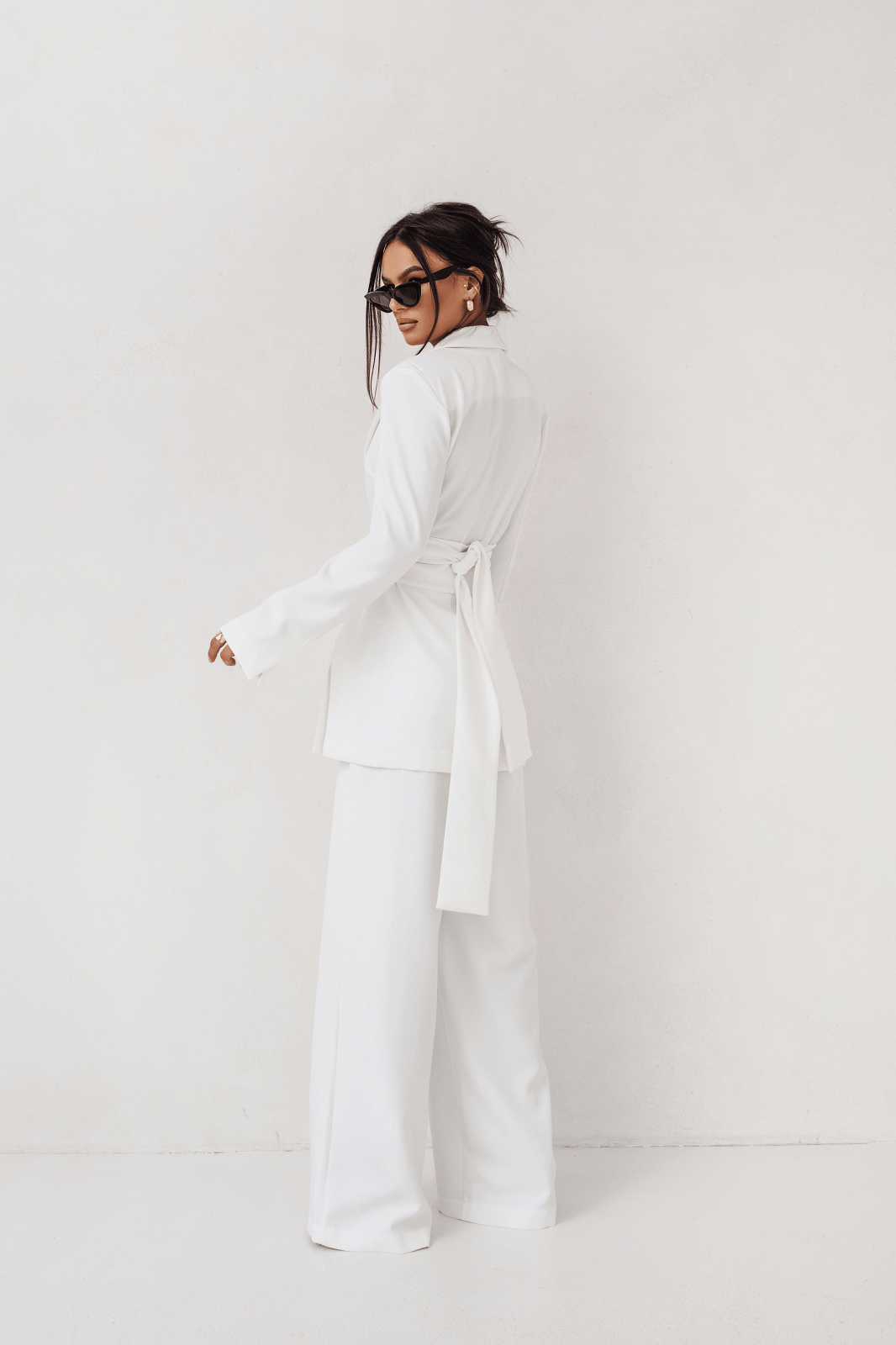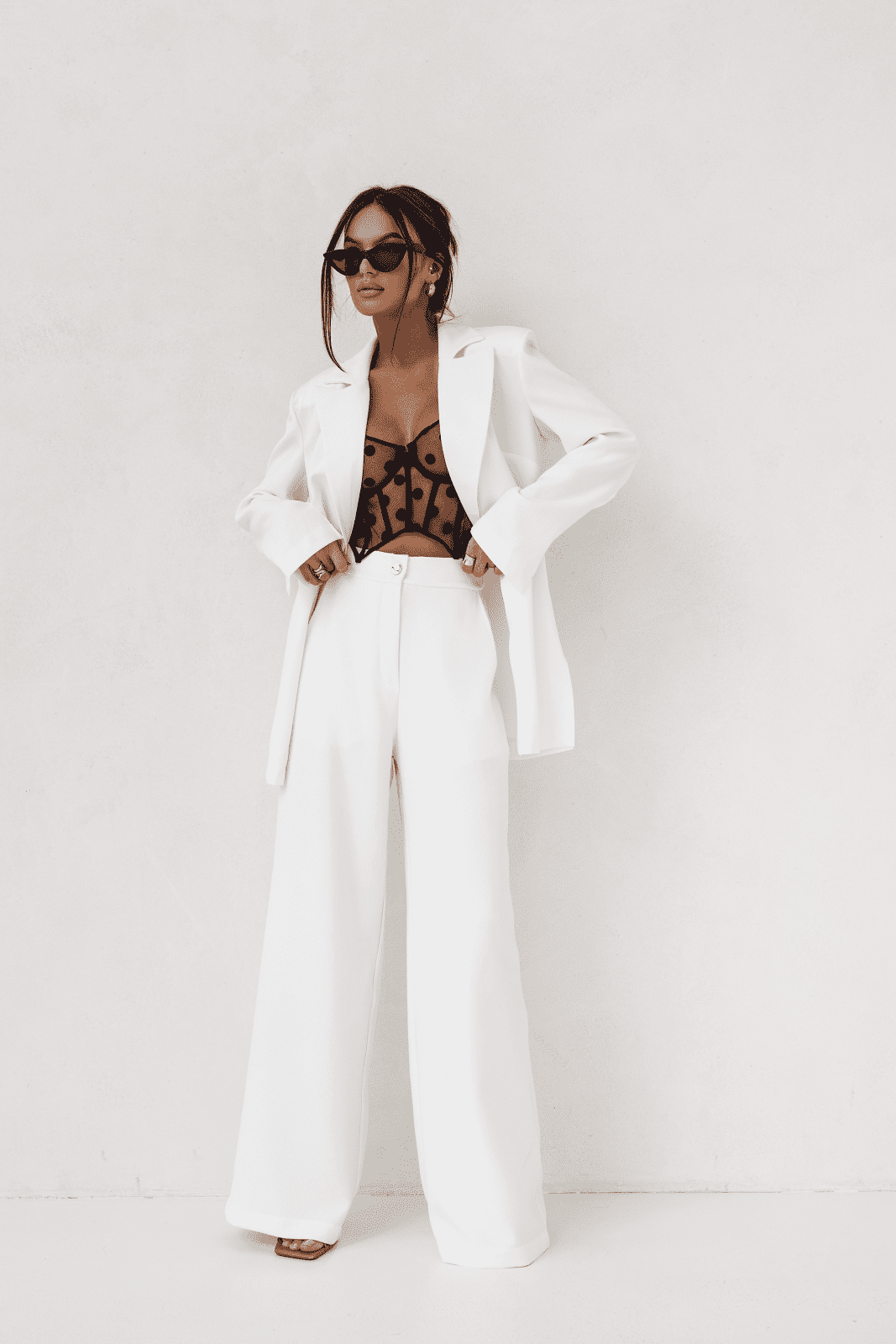 Προσθέστε ένα ζευγάρι ψηλοτάκουνες γόβες σε nude απόχρωση και minimal χρυσά κοσμήματα. Το Κοστούμι EMMA Εκρού είναι σχεδιασμένο για τη γυναίκα που επενδύει στην ποιότητα και επιθυμεί ένα διαχρονικό κομμάτι που θα την αναδεικνύει σε κάθε elegant εμφάνιση.