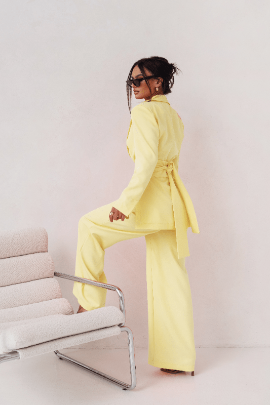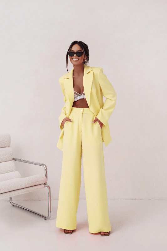 Το Γυναικείο Κοστούμι EMMA στην ηλιόλουστη Κίτρινη απόχρωση είναι η απόλυτη επιλογή για τη γυναίκα που θέλει να εκπέμπει αισιοδοξία, δυναμισμό και υψηλή αισθητική. Αυτό το premium set αποτελείται από ένα δομημένο σακάκι blazer με σύγχρονη κοπή και το αντίστοιχο παντελόνι σε ίσια γραμμή που χαρίζει μια αψεγάδιαστη σιλουέτα. Το κίτρινο χρώμα είναι η κορυφαία τάση για φωτεινές, statement εμφανίσεις που μαγνητίζουν τα βλέμματα με την ευρωπαϊκή τους φινέτσα.