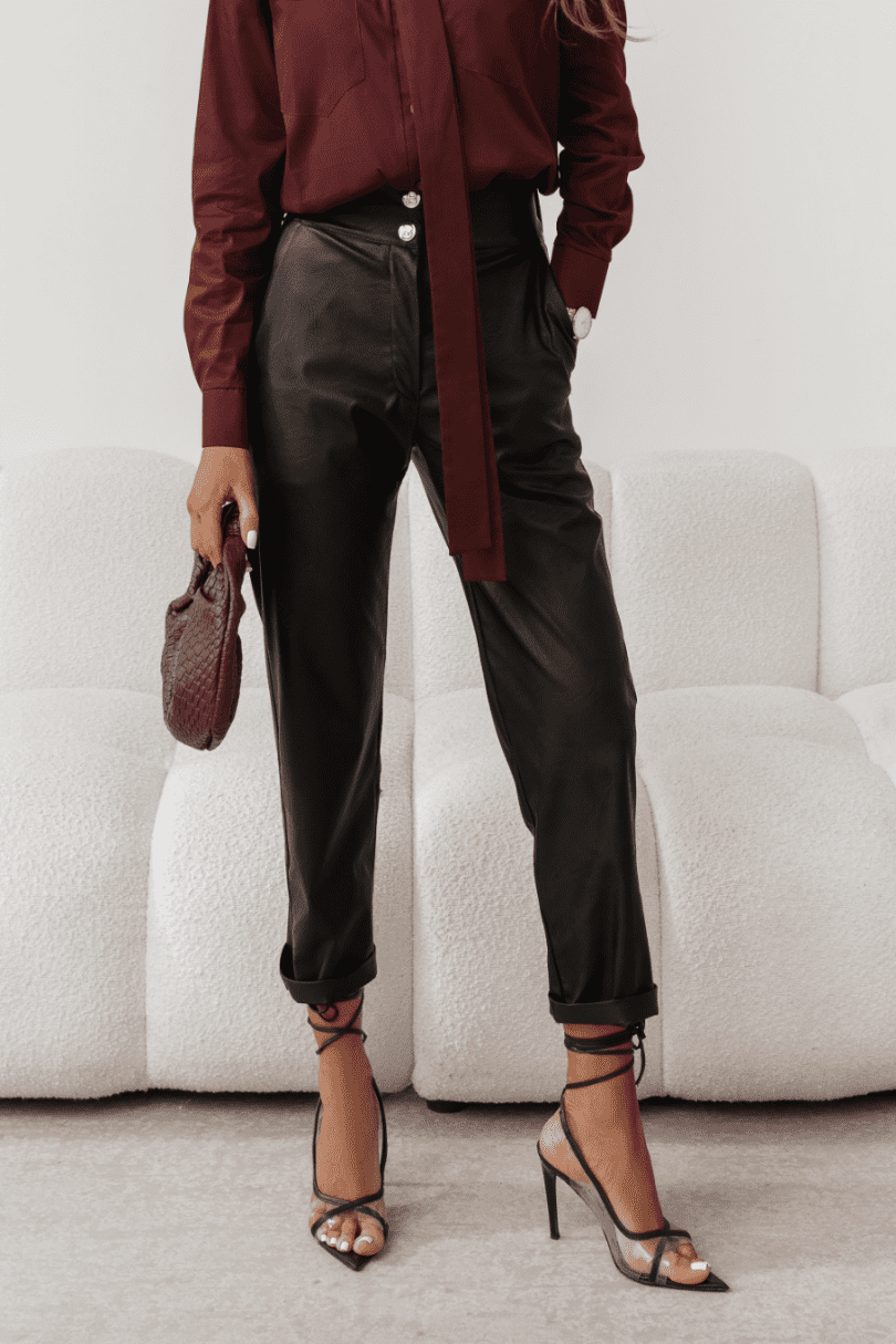 Το γυναικείο παντελόνι Noah σε μαύρο οικολογικό δέρμα είναι το απόλυτο key-piece για μια γκαρνταρόμπα με χαρακτήρα και σύγχρονη αισθητική. Σχεδιασμένο σε στενή γραμμή που αγκαλιάζει ομοιόμορφα τη σιλουέτα, προσφέρει ένα δυναμικό και ταυτόχρονα θηλυκό αποτέλεσμα. Η premium ποιότητα του οικολογικού δέρματος χαρίζει μια διακριτική λάμψη και editorial αίσθηση, κάνοντας το Noah την ιδανική επιλογή για τη γυναίκα που θέλει να συνδυάζει την άνεση με την υψηλή ραπτική σε κάθε της εμφάνιση.