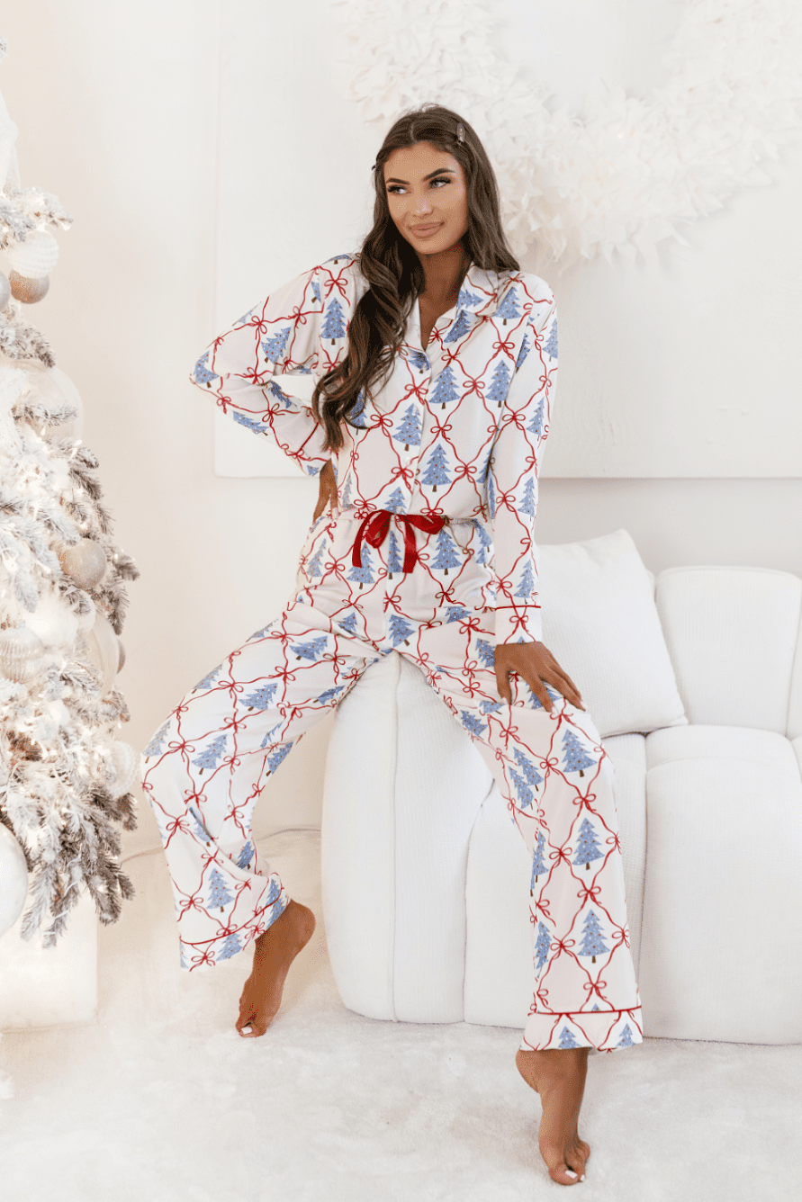 Ανακαλύψτε τη γοητεία και την άνεση που προσφέρει το σετ πιτζάμας TALLY με το εορταστικό σχέδιο με το χριστουγεννιάτικο δέντρο.