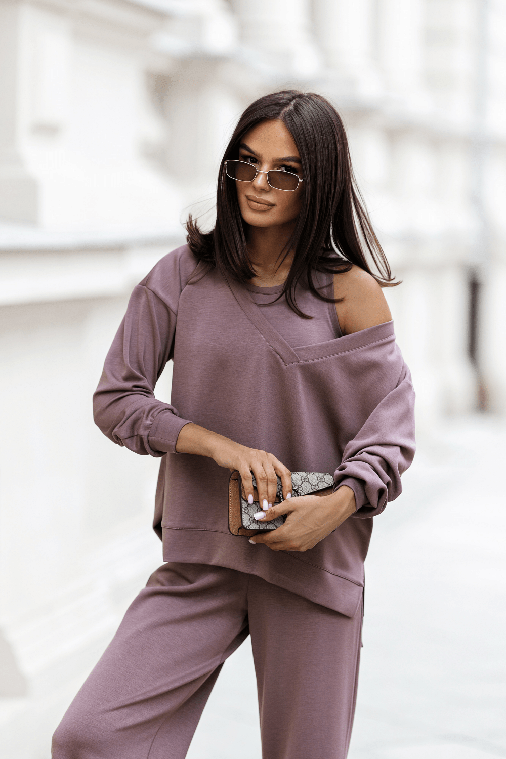 Γυναικείο Σετ Φόρμας 3 Τεμαχίων Bonny με Φούτερ Τοπ και Παντελόνι Μόκα