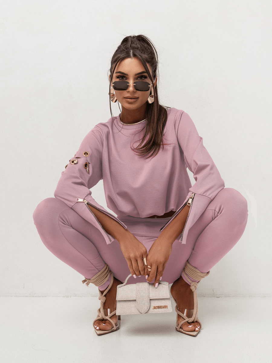 Το σετ Premium στην απόχρωση του dusty rose αποτελεί την απόλυτη editorial προσέγγιση στο σύγχρονο athleisure. Με κύριο χαρακτηριστικό τις statement διακοσμητικές παραμάνες που προσδίδουν έναν edgy και high-fashion χαρακτήρα, το σύνολο αυτό ξεφεύγει από τα κλασικά δεδομένα. Η dusty rose απόχρωση προσφέρει μια δόση ρομαντισμού που έρχεται σε τέλεια αντίθεση με τις μεταλλικές λεπτομέρειες, δημιουργώντας ένα look που εκπέμπει ευρωπαϊκή φινέτσα και δυναμισμό.