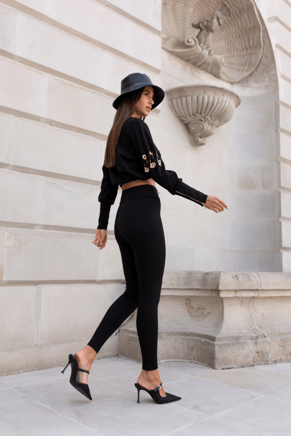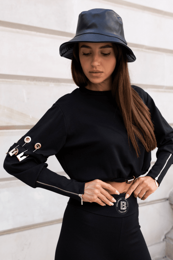 Γυναικείο Σετ Premioum με Διακοσμητικές Παραμάνες Φούτερ & Κολάν Sweatshirt & Leggings Μαύρο Black