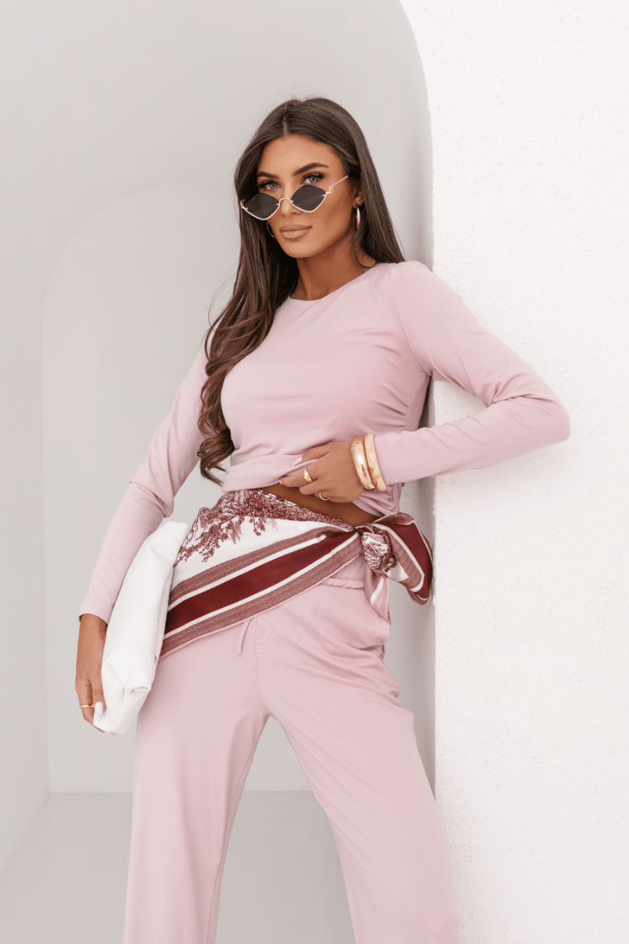 Το Σετ Shira στην αιθέρια Ανοιχτό Ροζ απόχρωση αποτελεί την επιτομή της ρομαντικής κομψότητας και της απόλυτης άνεσης. Αποτελείται από μια μακρυμάνικη μπλούζα που αγκαλιάζει το σώμα και μια αέρινη παντελόνα σε χαλαρή γραμμή που προσφέρει ελευθερία κίνησης. Το απαλό αυτό χρώμα χαρίζει μια γλυκιά φωτεινότητα, καθιστώντας το την ιδανική επιλογή για εσάς που αναζητάτε ένα περιποιημένο look που αποπνέει ηρεμία και φινέτσα.